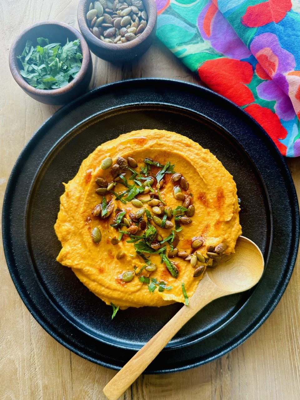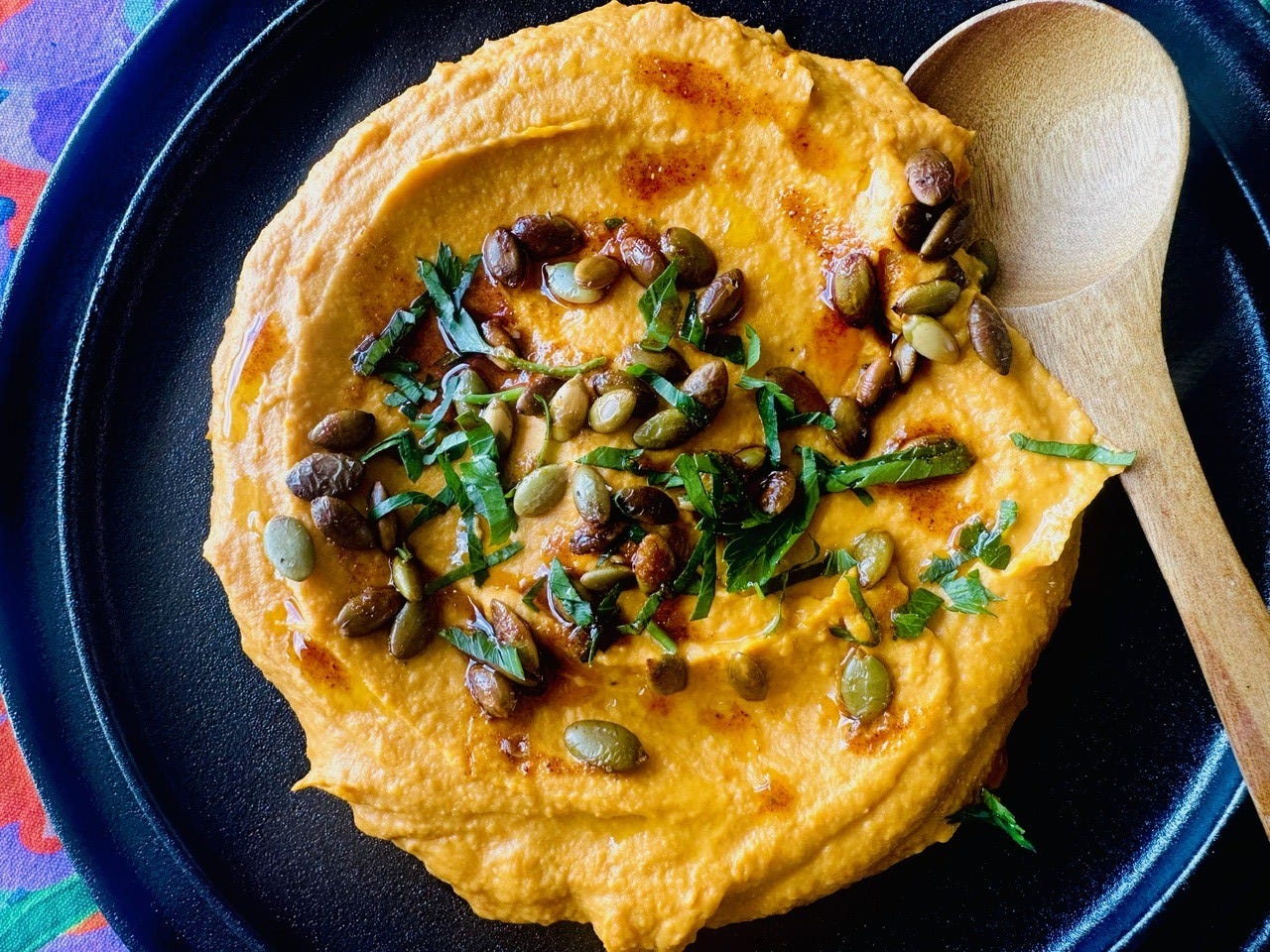 With a glorious butternut hummus that is also very Christmas-adjacent.